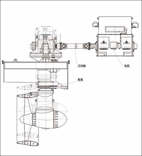 升降式全回转舵浆布置图 Retractable azimuth thruster arrangement diagram |