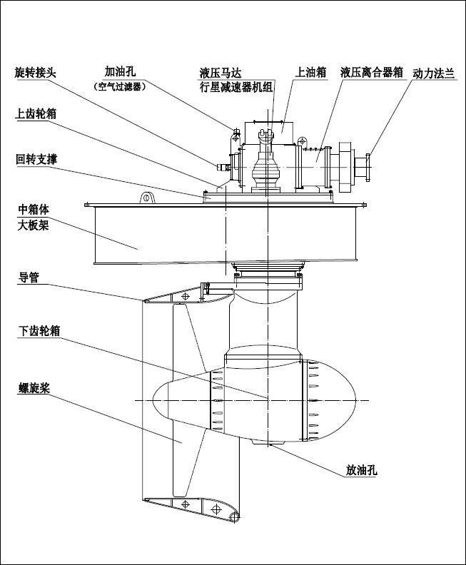 全回转导管舵桨布置图 Azimuth thruster with nozzle arrangement diagram