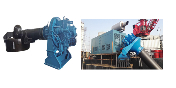 甲板组合式推进器是将全回转推进器与柴油主机组装成一体的船用动力推进机组,具有结构紧凑、机动性高、安装方便等优点。整台机组可直接安装在甲板基座上,用集装箱壳罩好,并由机械或液压装置调整其垂向高度,使船舶能适应较大的吃水深度变化并发挥较大推力。更好满足满载空载螺旋桨浸深需求。与对转桨组合设计可进一步减小螺旋桨直径,节约压载水处理系统费用及压载水调整时间。